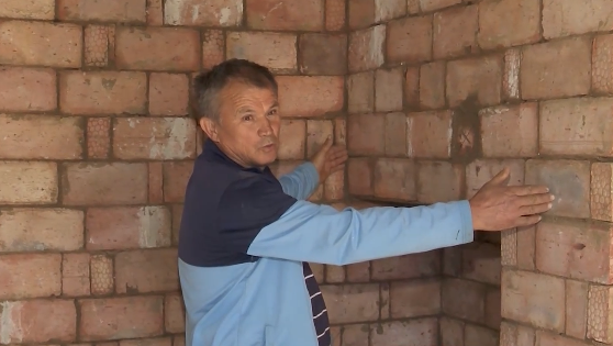 "При строительстве я сначала смазываю стены, а потом кирпич со всех сторон, чтобы не выходил дым, затем укладываю между остальными, пока не будет на одном уровне. Раствор должен выйти со всех сторон, собираем, потом кирпич надо утрамбовать, чтобы он улегся", - рассказал мастер.