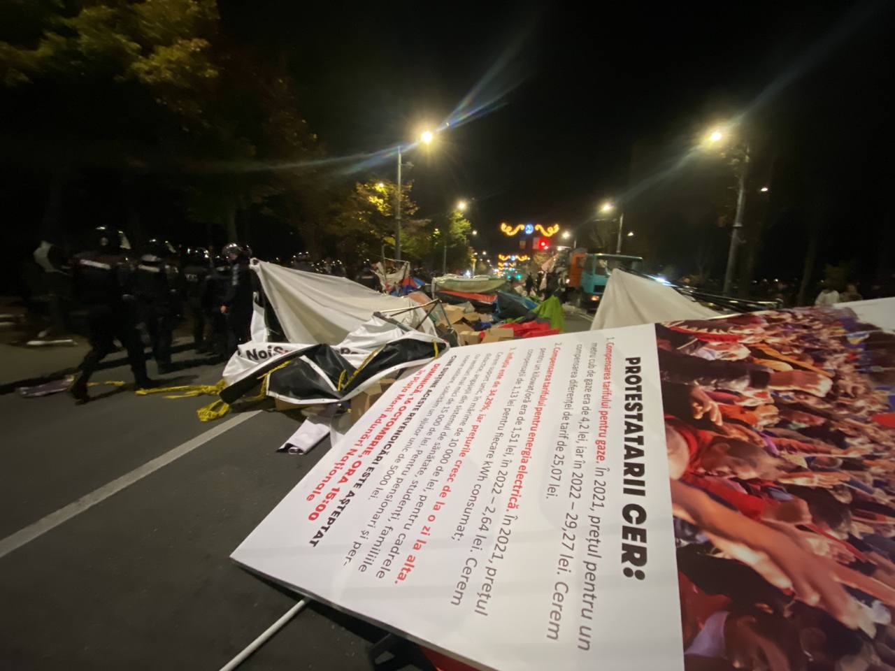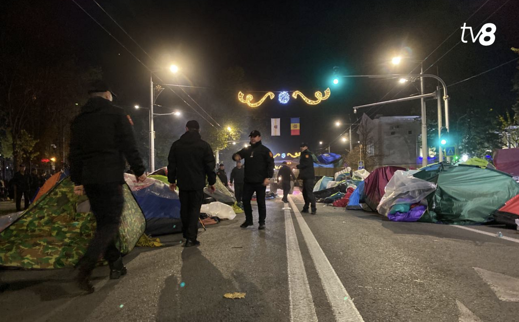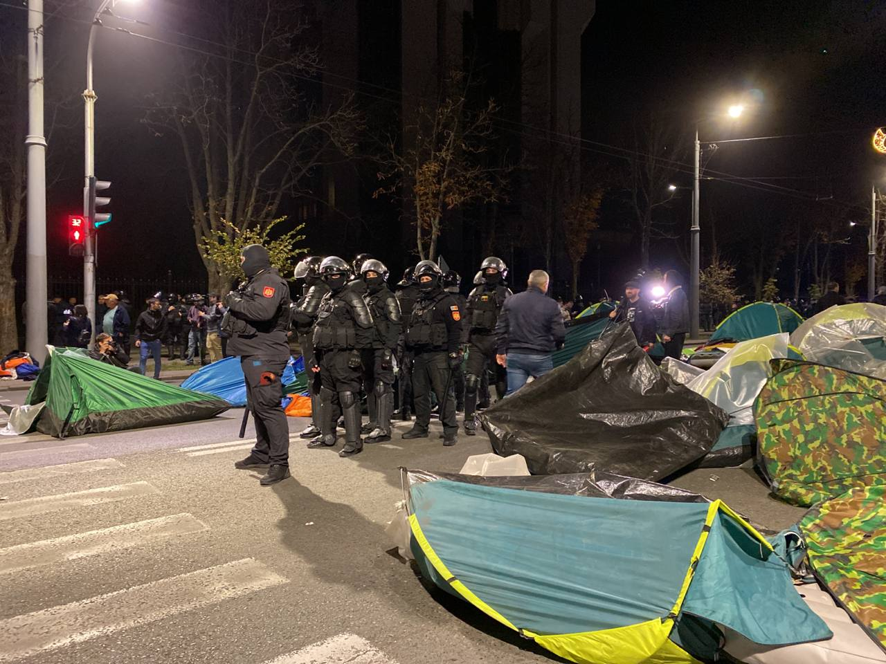 После официального завершения воскресного протеста, часть сторонников партии "Шор" не разошлись по домам и не переместились в палаточной городок у парламента, а решила остаться протестовать у памятника Штефану чел Маре в центре столицы. Некоторые из протестующих заявляли, что намерены остаться ночевать в установленных на дороге палатках.