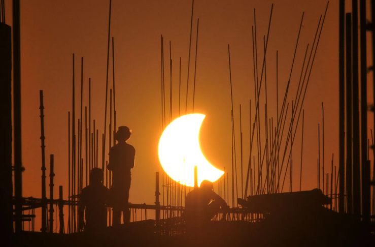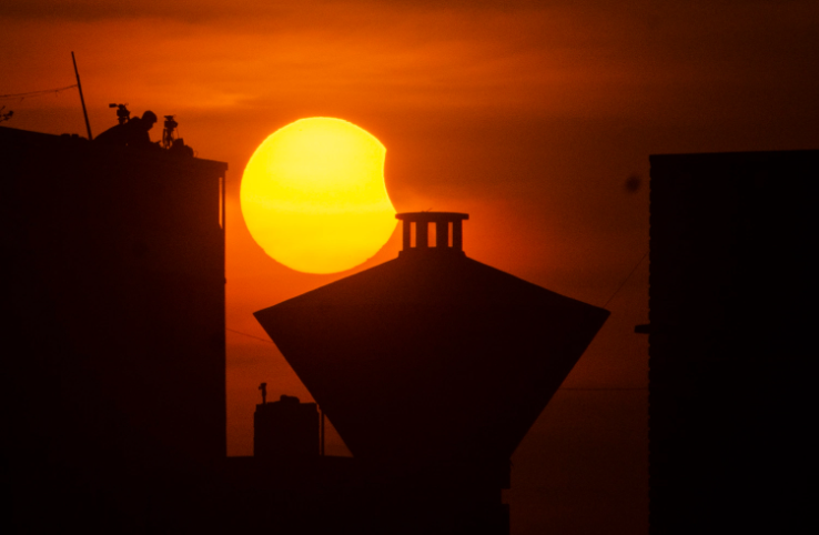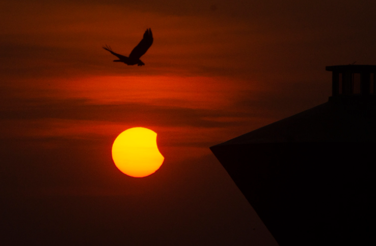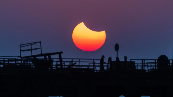 Во вторник, 25 октября, произошло последние в 2022 году солнечное затмение. Полную фазу можно было наблюдать в азиатской части России, частную — в Европе, на Ближнем Востоке, в Юго-Восточной Азии, в Северной Африке. Немного Луна накрыла Солнце и на небе Молдовы. Пользователи делятся фотографиями этого красивого астрономического явления из разных уголков мира. Вот какую подборку публикует prensalibre.com. Нам нем затмение запечатлели с территории Индии и Пакистана.