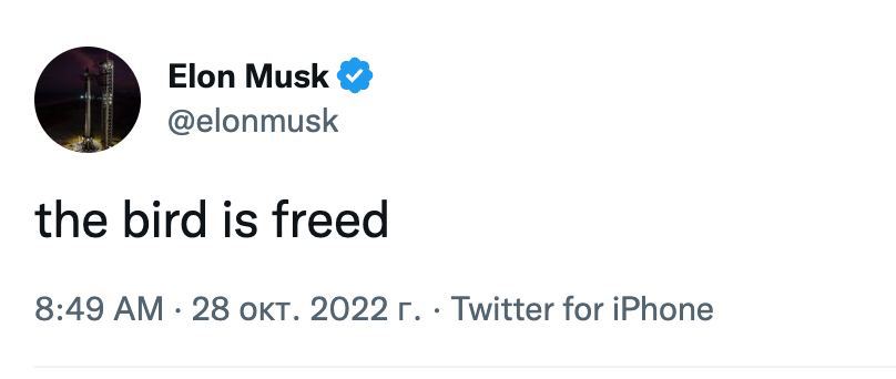 Бизнесмен также опубликовал первый твит после покупки компании.