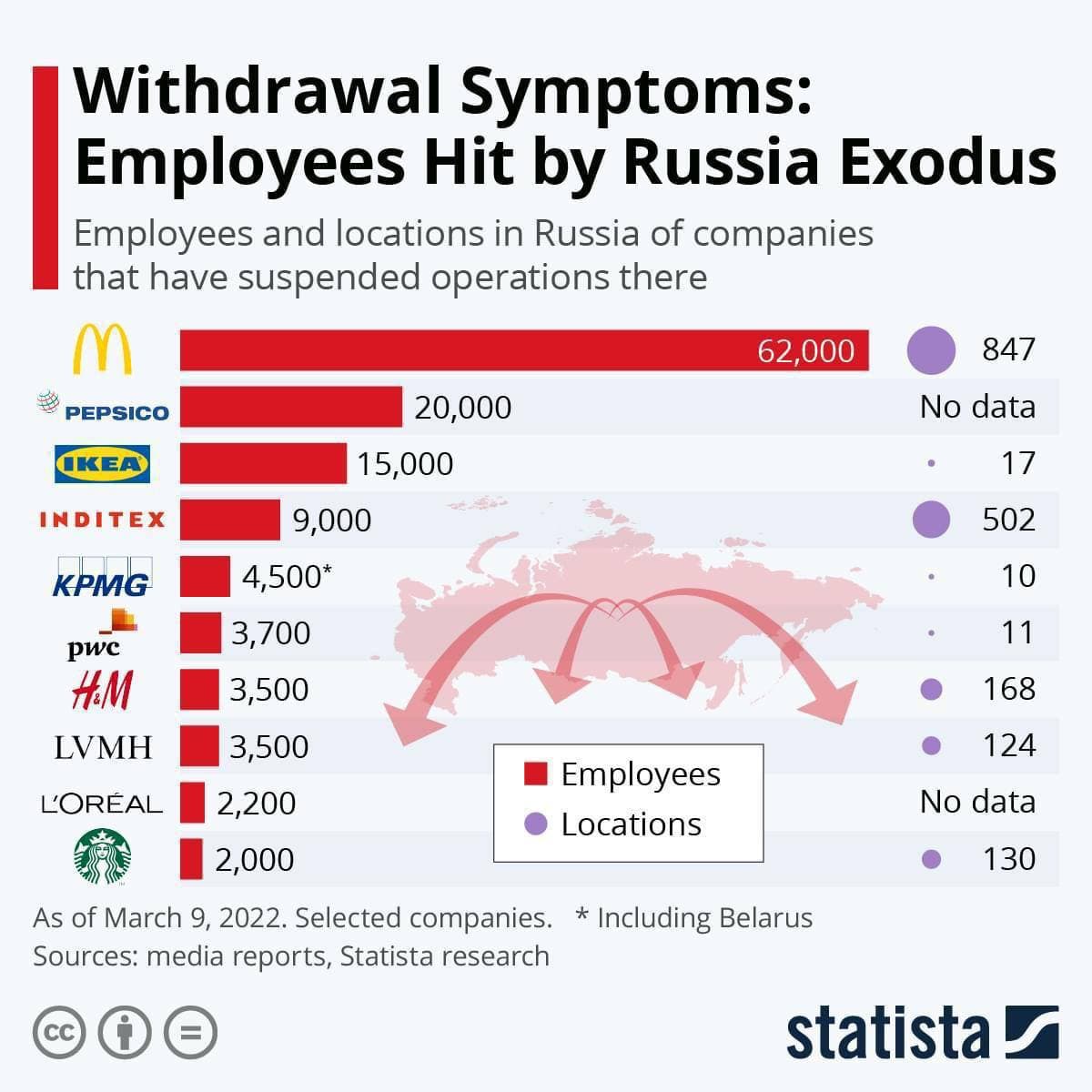 Именно таким было число работников McDonald's, IKEA и других иностранных компаний, которые остановили свою деятельность в России.