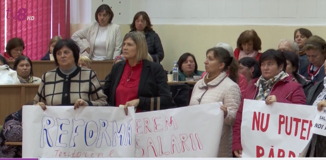 Несколько десятков работников учебных заведений Криулян с плакатами явились сегодня на заседание местного райсовета. Сетуют, не видели зарплат с августа. Ситуация зашла в тупик после того, как в начале сентября группа советников проголосовала за отстранение главы района от должности на месяц и создание специальной комиссии для начала служебного расследования в его отношении.
