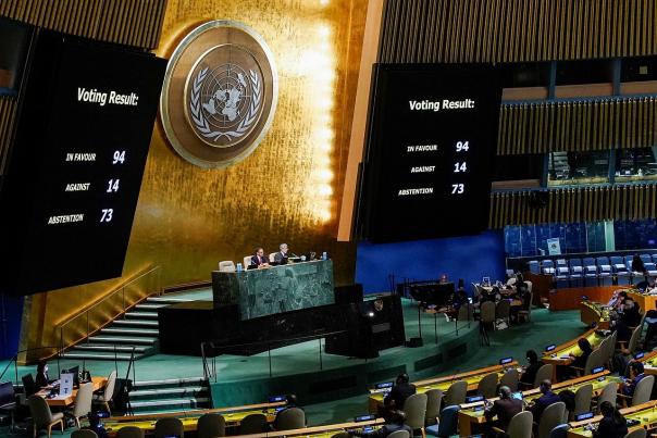 Генеральная ассамблея ООН приняла резолюцию, которая предусматривает ответственность России за действия в отношении Украины и выплату репараций за нанесенный стране ущерб. За резолюцию о репарациях проголосовали 94 государства, против — 14, воздержались — 73. Резолюция также призывает государства-члены ООН вести международный реестр материальных потерь Украины. Сообщает Forbes.