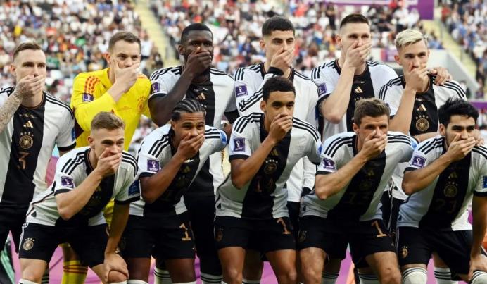 Футболисты сборной Германии на официальном фотографировании перед началом матча с Японией на ЧМ-2022 закрыли руками рты, пишет Meduza.