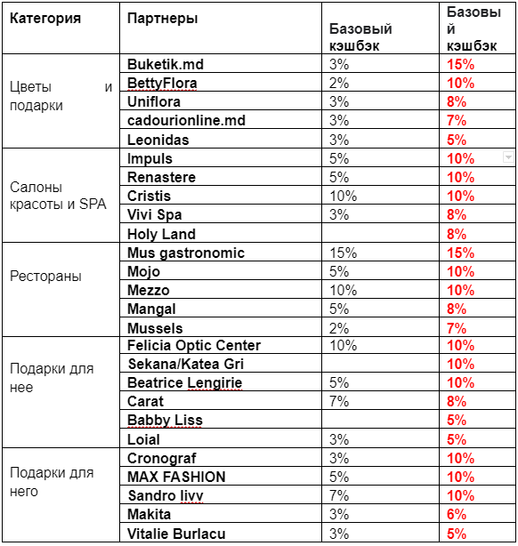 Салоны красоты Renaștere, Impuls и Cristis радуют тебя с 10% кэшбэка от стоимости каждой покупки, а Vivi Spa и Holy Land предлагает 8% кэшбэка.