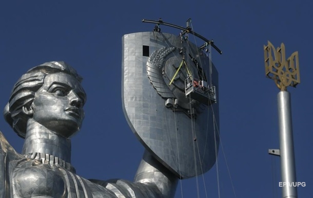 В Украине работы по демонтажу советского герба со щита «Родины-матери» проводятся в рамках проект «Тризуб Родины». Герб заменят украинским трезубцем. Работы планируют завершить ко Дню независимости Украины, который отмечается 24 августа.