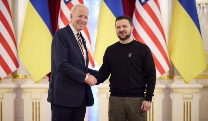 Сегодня президента США Джо Байдена заметили в Киеве. Как сообщили СМИ, двух глав государств засняли на Михайловской площади в Киеве. Байден и Зеленский прошли к мемориалу памяти погибших защитников Украины. На опубликованном видео слышны сирены воздушной тревоги.