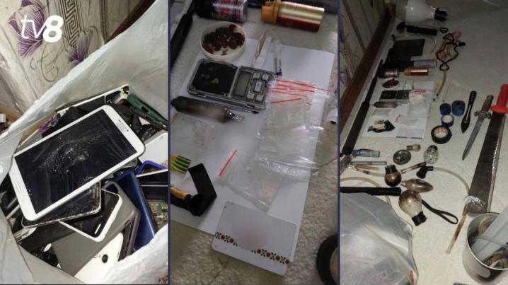 В ходе изъяли десятки zip-пакетов (их проверят на следы наркотиков), 25 мобильных телефонов, включая содержащий улики телефон подозреваемого, телескопическую трость и 1600 леев.