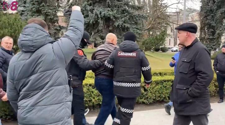 На акции протеста партии "Шор" у здания парламента произошла стычка между протестующими и контрпротестующими. Несколько мужчин, из числа сторонников действующей власти, набросились с кулаками на депутатов партии "Шор". Кадры с места событий предоставили корреспонденты TV8.