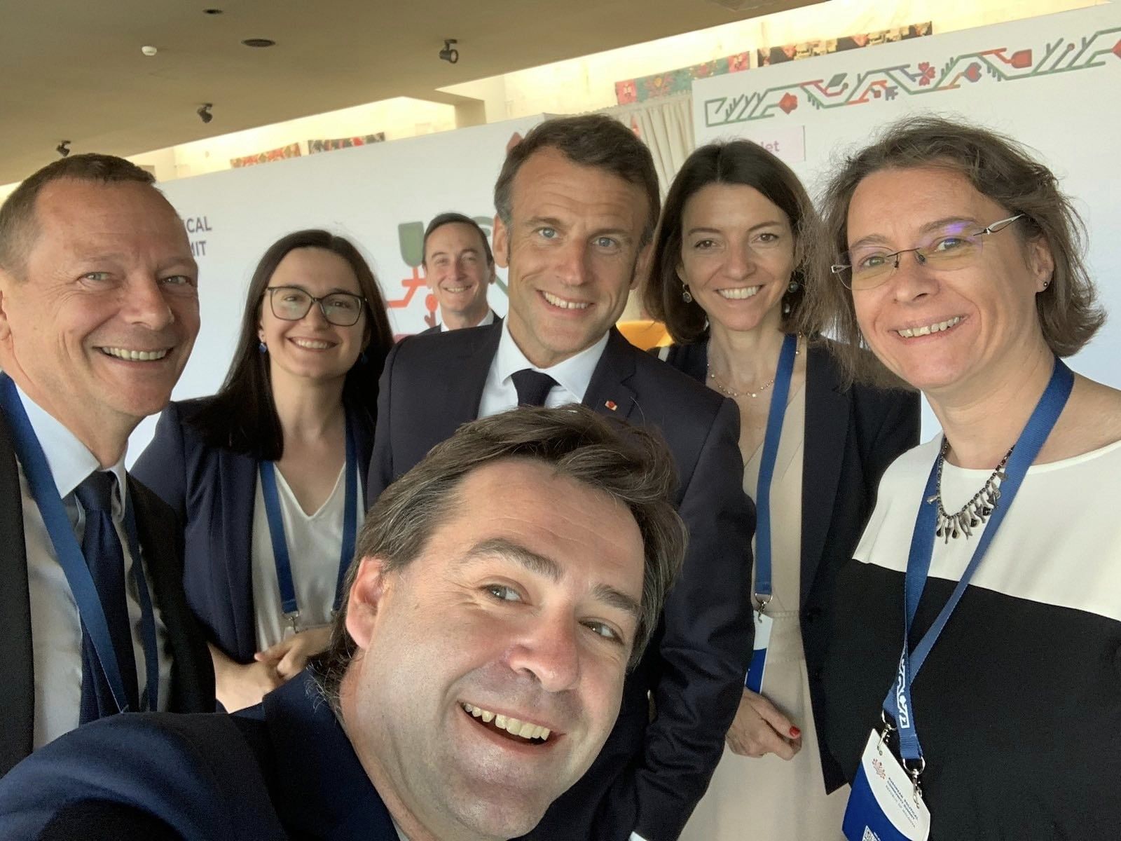 Он опубликовал несколько фотографий с президентом Франции Эммануэлем Макроном, президентом Украины Владимиром Зеленским и главой дипломатии Бухареста Богданом Ауреску.