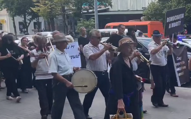 Сторонники запрещенной партии "Шор" организовали сегодня акцию протеста в центре Кишинева против ликвидации формирования. Они пришли к зданию Конституционного суда под звуки похоронного марша. В руках протестующие держали гвоздики и траурные венки.