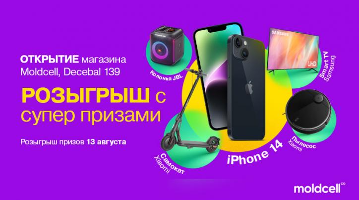 И это еще не все! Чтобы отпраздновать это событие, 13 августа в магазине будет организован розыгрыш призов, соответствующий вашим ожиданиям. Независимо от того, являетесь ли вы абонентом Moldcell или абонентом другой сети, все клиенты магазина могут участвовать. Этот розыгрыш – прекрасная возможность получить невероятные призы.
