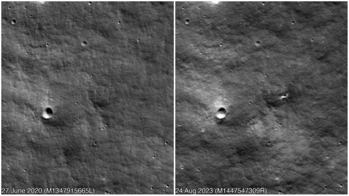 24 августа разведывательный орбитальный аппарат NASA зафиксировал изображение свежего кратера на поверхности Луны, вероятно, образовавшегося в результате падения российской станции "Луна-25". Об этом сообщается на сайте NASA.