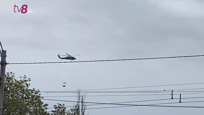 Сегодня, 9 мая, вертолет Black Hawk с флагами Молдовы и Европейского союза совершил полет над центром Кишинева.
