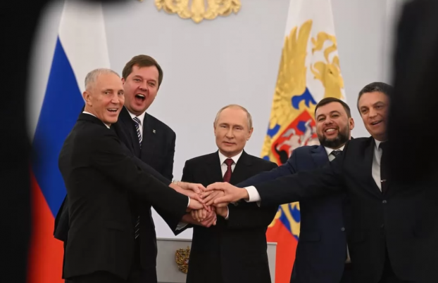 30 сентября 2022 года Путин, "главы" самопровозглашенных ДНР и ЛНР, а также назначенные Россией губернаторы Запорожской и Херсонской областей подписали в Кремле договоры о присоединении оккупированных украинских территорий к России.