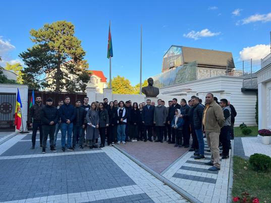 Сегодня в сквере Победы у Посольства Азербайджана в Молдове состоялось мероприятие, посвященное 18 октября – Дню восстановления независимости Азербайджана.