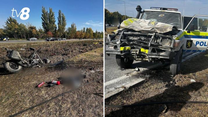 По имеющейся информации, мотоцикл, двигавшийся по бульвару Дачия, столкнулся с автомобилем Национального инспектората общественного порядка (НИОБ).