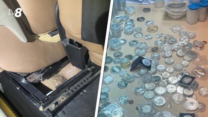 В ходе проведения выборочного досмотра, под водительским сиденьем обнаружили несколько свертков. В них находились: 1003 памятные монеты, 434 слитка, вероятно, из серебра, а также 6 драгоценных камней.