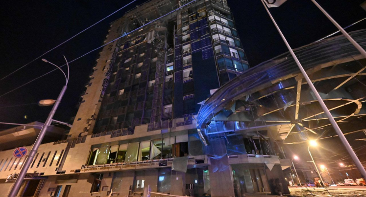 Последствия обстрела отеля в Харькове.