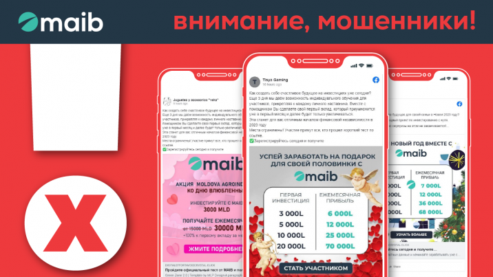Интернет-среда в последнее время стало пространством, где все чаще применяются мошеннические схемы. Они становятся все более креативными и манипулятивными, используя логотип maib, изображения государственных деятелей и известных людей, в том числе руководителей банков.