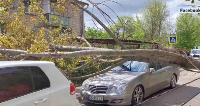 Порывистый ветер стал причиной очередных неприятных казусов для жителей столицы - на одну из припаркованных машин упало огромное дерево, задев и электрический столб, который повалился на другой автомобиль. В итоге жители прилегающих улиц на несколько часов остались без света.