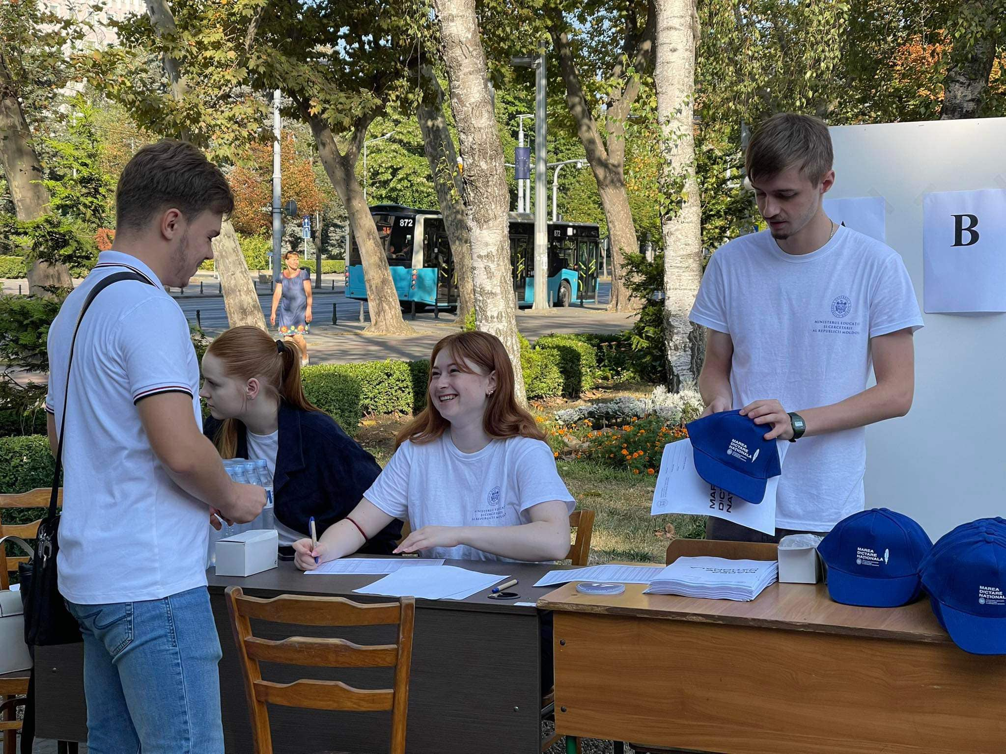 Se dă startul Marii Dictări Naționale. Scuarul Teatrului de Operă și Balet „Maria Bieșu” s-a transformat încă de aseară într-o sală de clasă. De la 8:30, cetățenii se înregistrează pentru a-și testa capacitățile lingvistice.