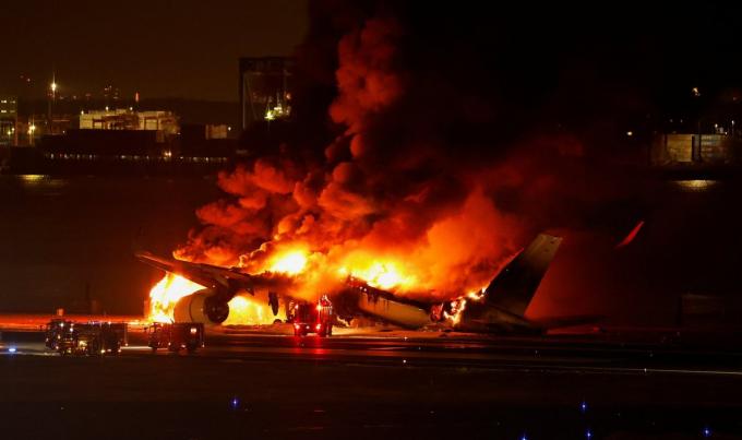 Причина пожара официально не называется, но агентство Reuters и японский вещатель NHK сообщили, что рейс Japan Airlines мог столкнуться с самолетом японской береговой охраны после посадки в «Ханэде».