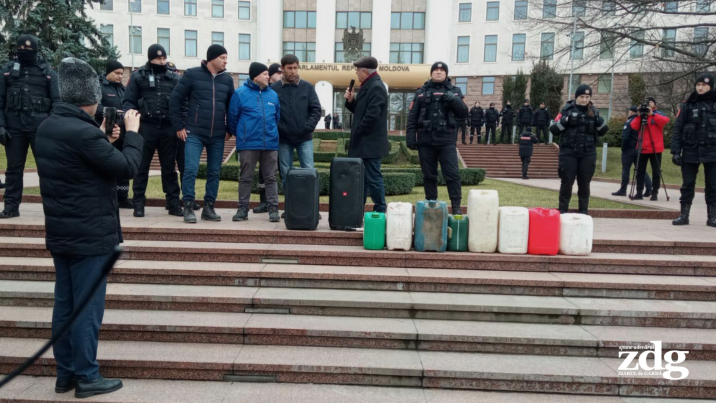 Фермеры, заблокировавшие подъездную дорогу к КПП "Леушены-Албица", устроили сегодня акцию протеста перед парламентом. Они принесли к законодательному органу пустые канистры. Таким образом аграрии решили ответить министру сельского хозяйства, который ранее заявил, что у государства нет “даже двух канистр” для хранения выделенного Румынией дизтоплива. Ни один из представителей парламента пока не вышел к протестующим.