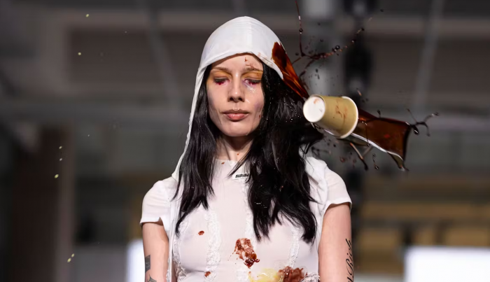 Треш-перфоманс устроил один из скандинавских брендов. До начала мероприятия всем присутствующим раздали ведра с мусором, собранным прямо перед показом. Модников попросили не стесняться и швырять мусор в любую модель. Как объяснили создатели бренда, таким образом они хотят высветить злободневную проблему – тему психологического насилия в соцсетях, а также напомнить, как важно оставаться настоящим человеком в эпоху хейтеров, ботов и "диванных критиков".