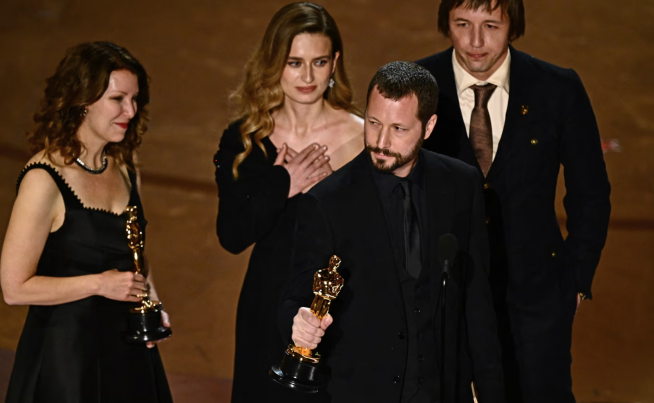 "Хотел бы я, чтобы этого фильма не было. Я бы отдал эту награду, чтобы Россия никогда бы не нападала на Украину, никогда не захватывала наши города, чтобы не убивала десятки тысяч украинцев, чтобы не удерживала заложников — гражданских и солдат, которые защищали свою землю. Но я не могу изменить историю, не могу изменить прошлое, но мы все вместе. Вы — одни из самых талантливых людей в истории.