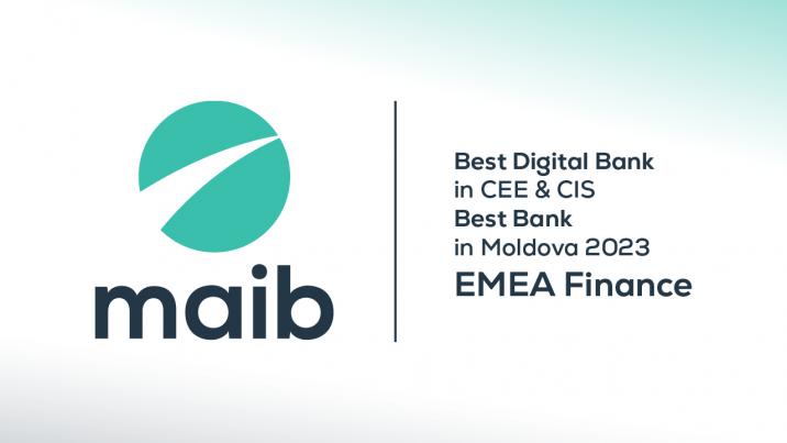 Maib получил две престижные награды от EMEA Finance: «Лучший банк Молдовы 2023» и «Самый цифровой банк в Центральной и Восточной Европе (ЦВЕ) и СНГ». Эти награды подчеркивают приверженность maib к инновациям и клиентоориентированности в банковской сфере, а также отмечают достижения банка в области цифрового развития.