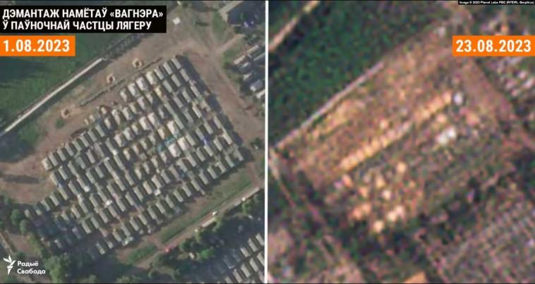 Лагерь ЧВК «Вагнер» в деревне Цель Осиповичского района Могилевской области Беларуси начали демонтировать в первых числах августа. Об этом сообщает «Радио Свобода Беларусь» со ссылкой на спутниковые снимки Planet Labs.