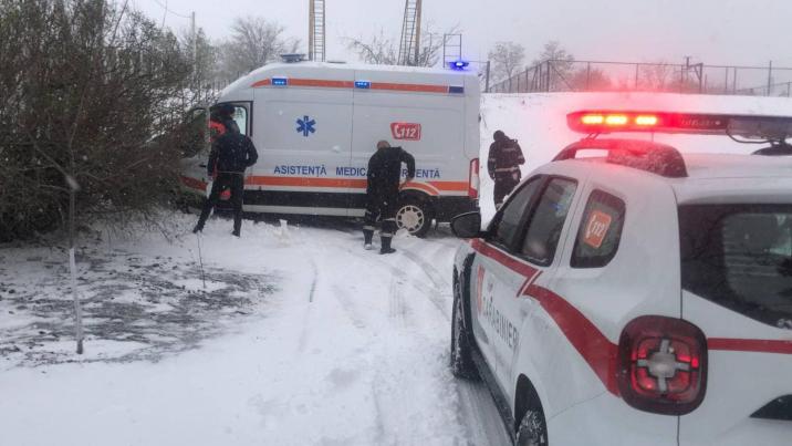 В Чадыр-Лунге карета скорой помощи застряла в снегу. Медиков к пациенту доставили спасатели