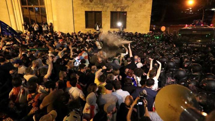 В Тбилиси ночью полиция и спецназ предприняли попытку разогнать акцию оппозиции против "закона об иностранных агентах". Силовики использовали водометы, светошумовые гранаты и слезоточивый газ. Однако протестующие не отступили и вернулись на проспект Руставели. Некоторые пытались построить баррикады, используя для этого мусорные баки, навесы и железные заграждения. Утром МВД сообщило о задержании 63 человек.