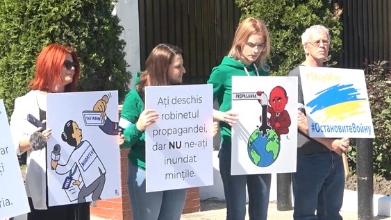 Флешмоб перед посольством Российской Федерации в Кишиневе. По случаю Всемирного дня свободы печати группа молдавских журналистов, а также правозащитники и представители гражданского общества собрались перед дипмиссией, чтобы передать послание поддержки журналистам, чьё право на свободу выражения мнения подавляется, и подчеркнуть последствия войны в Украине для свободной и независимой прессы.