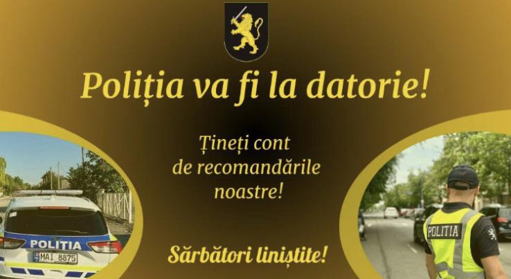Полиция Молдовы поздравляет граждан страны с наступающими праздниками и просит следовать рекомендациям, которые стражи порядка опубликовали в Telegram.