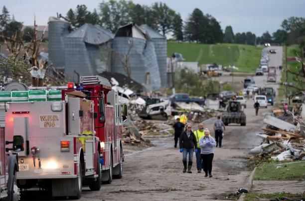 Небольшой городок в американском штате Айова сильно пострадал от мощного урагана. Известно как минимум о 12 раненых и нескольких погибших. В сети появились кадры, на которых видно, как торнадо обрушивает ветряные турбины.