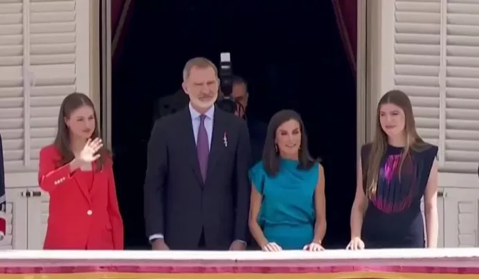 Король Филипп и его супруга королева Летиция прибыли в королевский дворец в Мадриде на Rolls Royce. Принцессы Леонор и София последовали за ними на другом автомобиле. После этого, члены королевской семьи приветствовали собравшихся людей на площади с центрального балкона.
