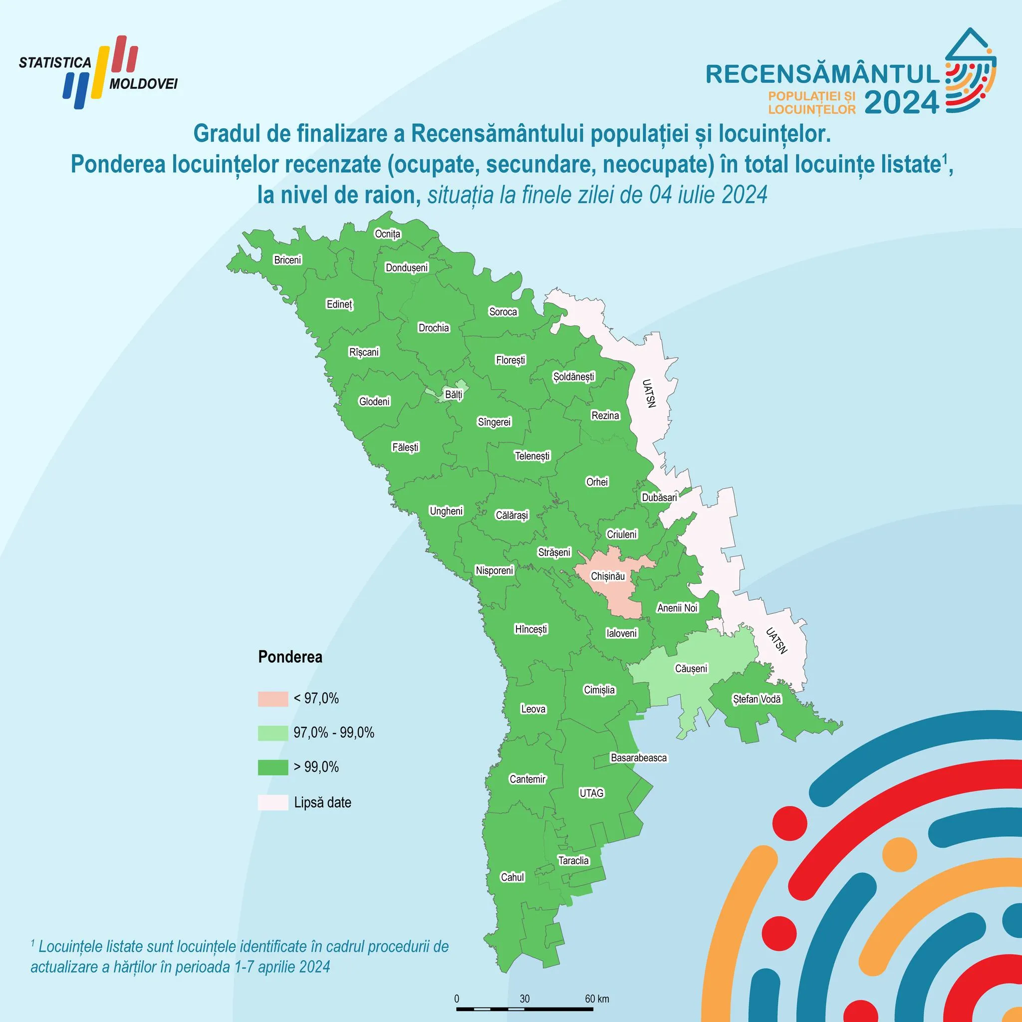 Как сообщили в Национальном бюро статистики, почти по всем районам переписали больше 99% граждан. Исключением стали густонаселенный Кишинев и не особо населенный Каушанский район.