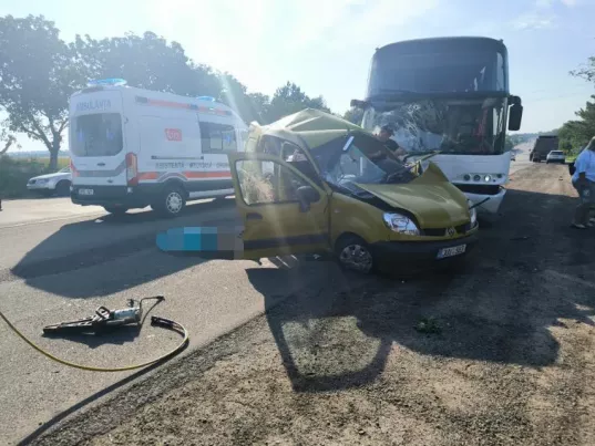 Автомобиль марки Renault Kango столкнулся с автобусом Neoplan, следовавшим по маршруту Кишинев - Киев. На место выехали два экипажа спасателей.
