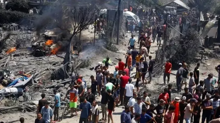 Сообщается, что удар нанесли по району Аль-Маваси возле Хан-Юниса, который израильские военные объявили гуманитарной зоной, призывая палестинцев укрываться там.