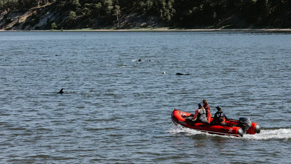 Наблюдатели за китами прикрепили к дельфинам спутниковые метки, чтобы отслеживать их передвижение. Сообщается, что животные плавают на безопасном расстоянии от берега.