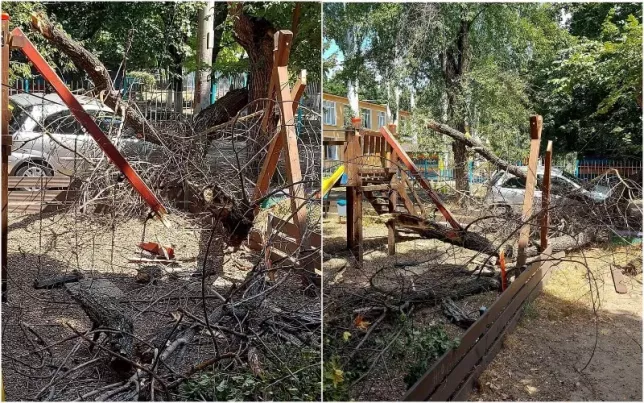 В столичном секторе Рышкановка сухое дерево рухнуло на детскую площадку. Фотографии с места инцидента опубликовали в социальных сетях.