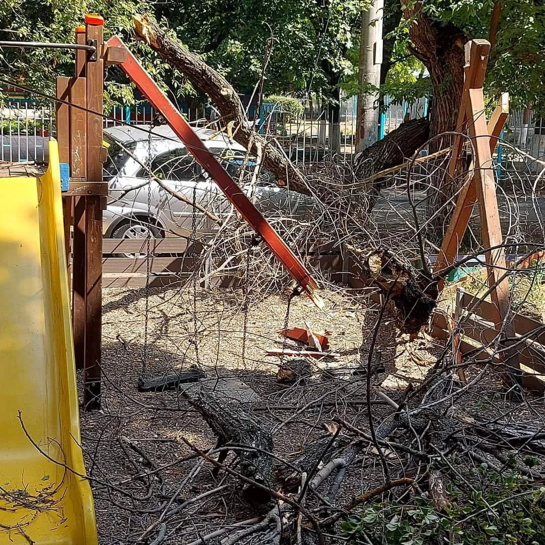 /ФОТО/ В столичном секторе Рышкановка сухое дерево упало на детскую площадку