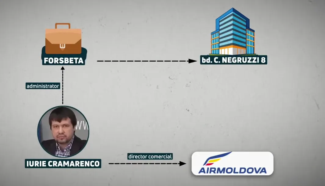 FORSBETA основал и администрировал Юрий Крамаренко, также попавший в список СИБ, только как лицо, аффилированного не с Шором, а с Андронаки. Крамаренко был коммерческим директором AIR Moldova, приватизированной через посредников Иланом Шором, а затем обанкротившейся. Forsbeta зарегистрирована на бульваре Негруцци, 8, в здании, принадлежащем AIR Moldova.