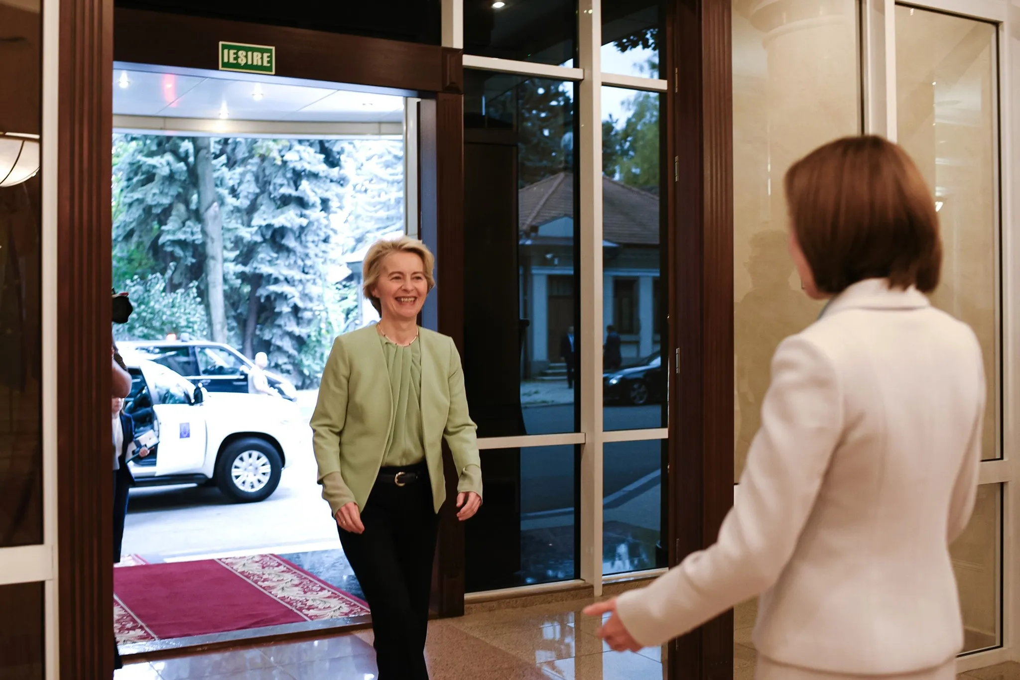 В Кишинев прибыла предсеатель Европейской Комиссии Урсула фон дер Ляйен. Повестка дня началась с двусторонней встречи с президентом Республики Молдова Майей Санду.