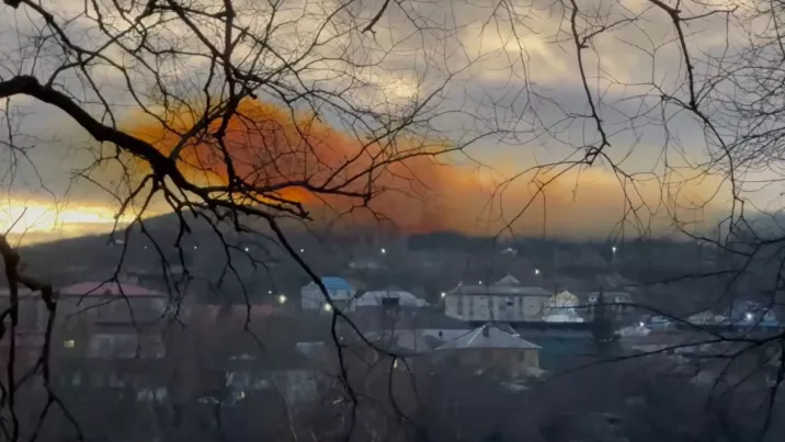 Оранжевый дым, который поднялся в небо, был замечен множеством людей, а видео с места событий быстро распространилось в социальных сетях.