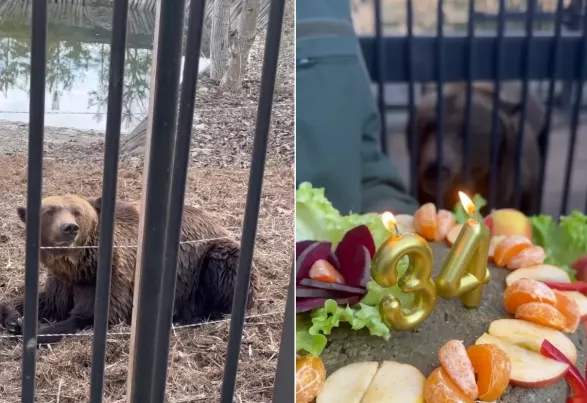 /ВИДЕО/ В зоопарке Кишинева поздравили с днем рождения одного из старейших обителей - медведя Ворчуна