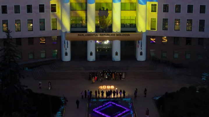 În onoarea soldaților ucraineni, căzuți pe câmpul de luptă, Parlamentul Republicii Moldova a fost iluminat azi în culorile drapelului țării vecine, iar deputații moldoveni au aprins lumânări în fața Legislativului. Jurnalista Camelia Ciornocan a vorbit cu oamenii veniți să aducă un omagiu ucrainenilor.