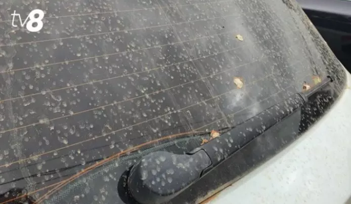 Метеорологический феномен проявляется в виде налета красноватой пыли, который оседает на всех поверхностях (особенно заметно на автомобилях). Причиной стали сильные ветры, переносящие мелкие частицы песка из северной Африки.